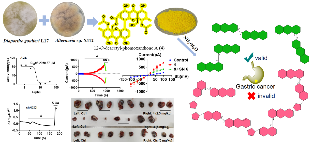 近日,伟德国际1946董辉教授与彭晓娉副教授联合团队在微生物源天然产物抗胃癌机制研究领域取得重要突破。其研究成果“Fungal dimeric xanthones as anticancer agents by novelly stimulating sodium-calcium exchanger 1”(DOI:10.1016/j.ejmech.2025.117543)发表于药物化学领域的经典顶级期刊《European Journal of Medicinal Chemistry》(中科院医学2区,药物化学1区,IF = 6.0)。该研究由硕士研究生周国龙、董克敏共同完成,董辉教授和彭晓娉副教授为共同通讯作者。
