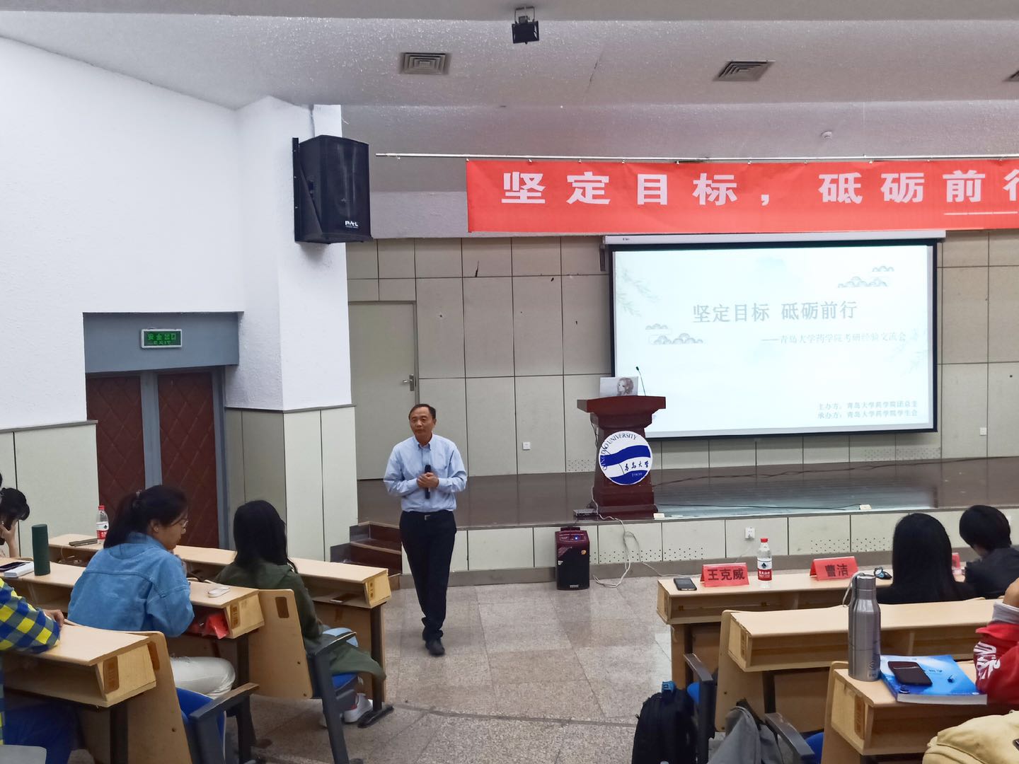 王克威以“勤奋 卓越 健康 成才”为题做考研动员。他充满激情的向与会人员介绍了药学学科发展的近况和学院考研整体情况,分享了他的学术研究体会和对考研的认识,勉励同学们积极投身医药行业创新发展,以实际行动报效祖国,勤奋学习,追求卓越,珍惜现在良好的学习条件,保持身心健康,人人成才成功。