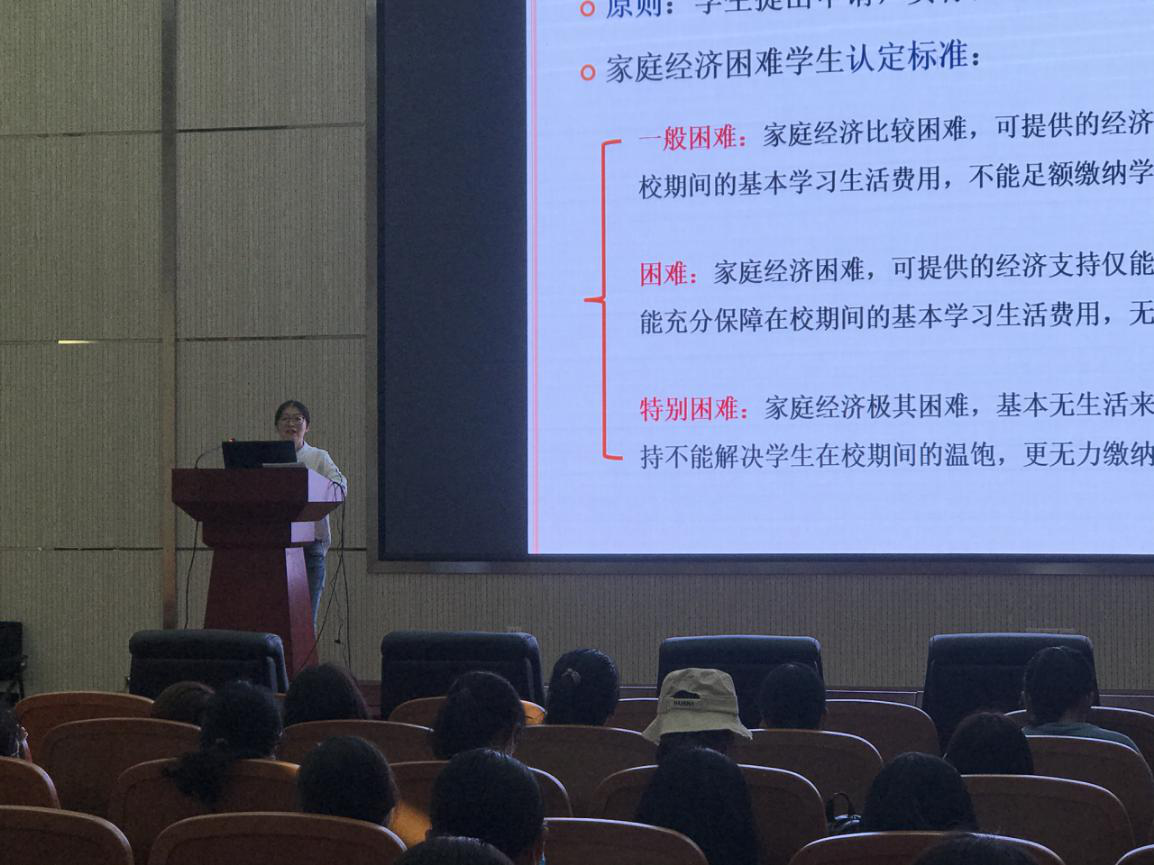 卢炜老师详细讲解了请假、考试、奖惩等日常管理制度,雷舒涵老师介绍了政府和学校对奖学金的资助形式,讲解了家庭经济困难员工认证实施办法、勤工助学管理办法等政策,提醒同学们认真学习并保管好《员工手册》,有问题随时找老师。雷舒涵还就宗教信仰问题与同学们交流了看法。