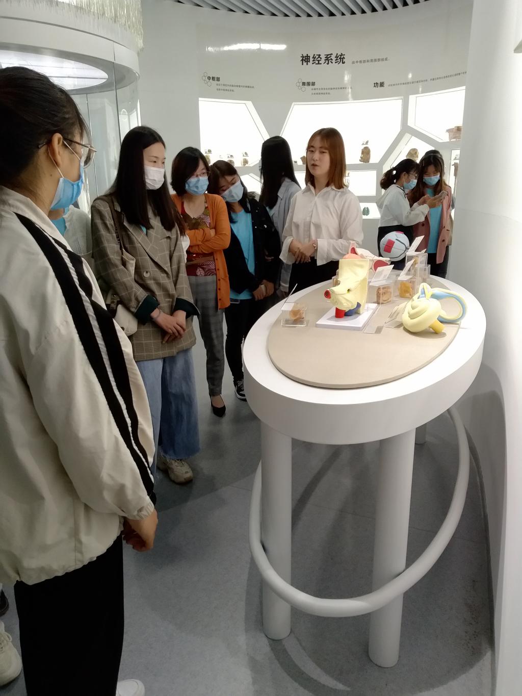 之后同学们来到了人体生命科学馆,展馆分胚胎学展区和解剖学展区两大部分,通过各种人体标本、医学教研设备以及讲解员的介绍,同学们直观深切地领悟生命孕育之艰辛曲折,感叹人体结构之精妙绝伦,感悟健康之弥足珍贵,油然而生尊崇科学精神,珍爱生命健康之理念。