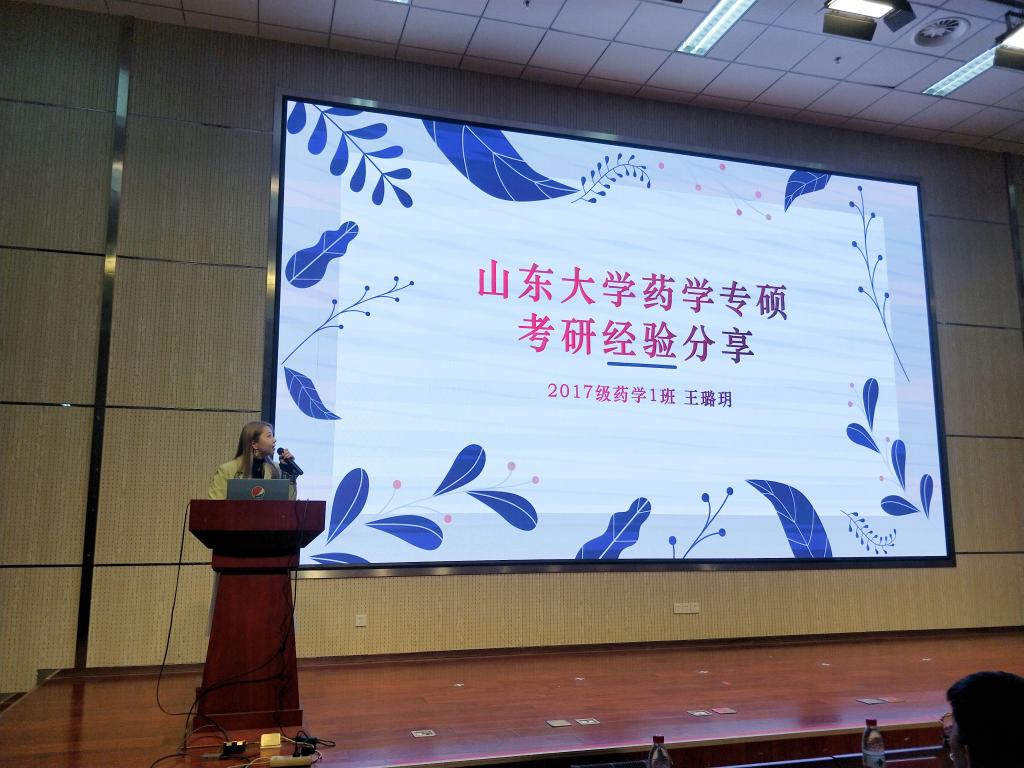 首先进行分享的是考取苏州大学临床药学学硕的张凯杰,他从抉择与准备、计划、建议三个方面出发,结合个人经验对考研前的自我拷问,专业课的学习方法,有助于学习的软件与公众号等向大家进行了详细介绍。第二位上场的是考入山东大学药剂学专硕的王璐玥,她主要向大家介绍了考题重点、刷题攻略和招生计划,并针对之前同学们提出的一些大学学习、考研过程中遇到的问题做了详细解答。 第三位分享人是考入中国药科大学药理学学硕的丁豪,他针对考研题型向大家介绍了自己的学习方法和复习攻略,并强调考研过程中要注意方法和效率。