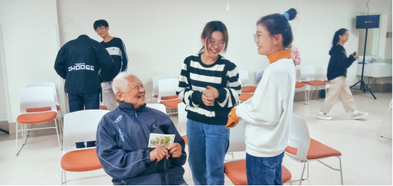 欢乐的时光总是觉得短暂,活动结束,临走之际,一位老人拉着志愿者同学的手说:“好孩子,谢谢你们来这,你们大一,还没有那么忙的,一定要多多过来做志愿,陪我们聊聊天。”同学们赶忙答应,并恋恋不舍地与爷爷奶奶道别。