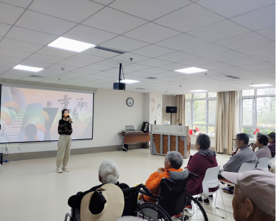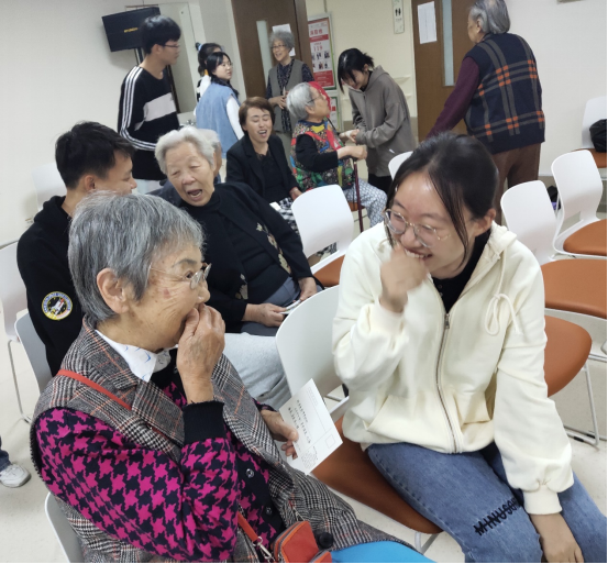 活动开始,同学们向老人们介绍活动内容,开始才艺展示。美妙的歌声,欢快的舞蹈,有趣的故事……给老人们带来欢欣和放松;更有一场幽默搞笑的相声,引得老人和同学们都哈哈大笑。