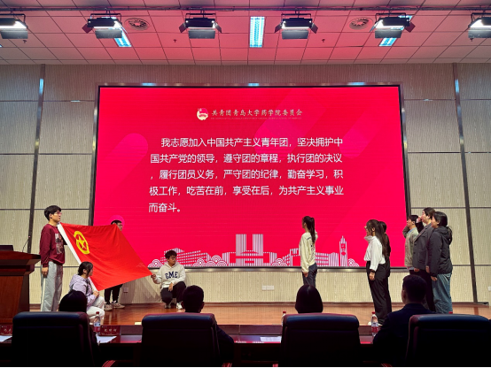 2024年11月16日上午,公司首期“青马工程”培训班开班仪式暨2024年新发展团员入团仪式在医学教育综合楼学术报告厅举行。公司党委副书记雷舒涵出席仪式并讲话。活动由辅导员仇启荣主持。学院团委负责人杨浩,首期“青马工程”培训班全体学员以及部分团员青年代表参加仪式。