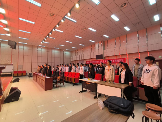 仪式上,学院团委负责人杨浩介绍了本期“青马工程”培训班相关情况。本期培训班,公司面向全院团员青年选拔了68名“青马工程”培训班学员,以“青春为中国式现代化挺膺担当”为主题,为期两天,以专题讲座,学习研讨,素质拓展,现场教学等方式设置培训体系和课程体系,从“红心向党篇”、“理论引领篇”、“见贤思齐篇”以及“技能提升篇”四大模块开展培训。