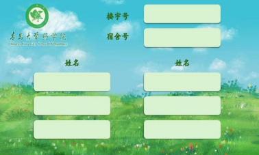 设计说明:这款宿舍铭牌设计,以清新自然的风格展现伟德国际1946特色。背景选取蓝天白云与花草绿地的图案,寓意着伟德国际1946学子如蓬勃生长的植物,在知识的滋养下茁壮成长,充满生机与希望。