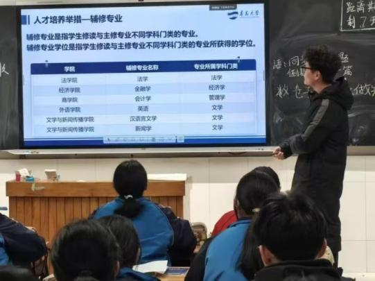 2025级本科生闫清馨前往山东省枣庄市第一中学,面向高三在校生开展招生宣传。活动筹备阶段,闫清馨精心撰写宣讲文稿,细致核查宣传物料,并主动与校方对接,确保宣讲活动有序推进。2月2日,宣讲正式开展,闫清馨围绕伟德国际1946招生计划、历年录取分数线、团队力量及推免政策等核心内容进行精准解读,有效地打破了同学们的信息差。宣讲结束后,闫清馨耐心耐心解答了高三学子的提问,获得了良好的活动反响。