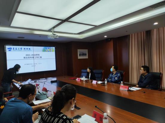 会议首先由10位班主任以PPT形式汇报工作情况。2018级本科生班主任老师们围绕班级思想建设、学风建设和毕业去向等方面介绍了各自所带班级情况,着重介绍了班内毕业生考研就业情况。2019级本科生班主任老师们围绕思想教育、学风建设、专业建设、员工日常管理等方面介绍了各自所带班级的情况,并提出“共同奔赴美好未来”的期许。2020级和2021级班主任分别从思想建设、班级建设、学习情况、综合发展等方面介绍了所带班级的情况,并展示了员工在各大赛事中所获的奖项。
