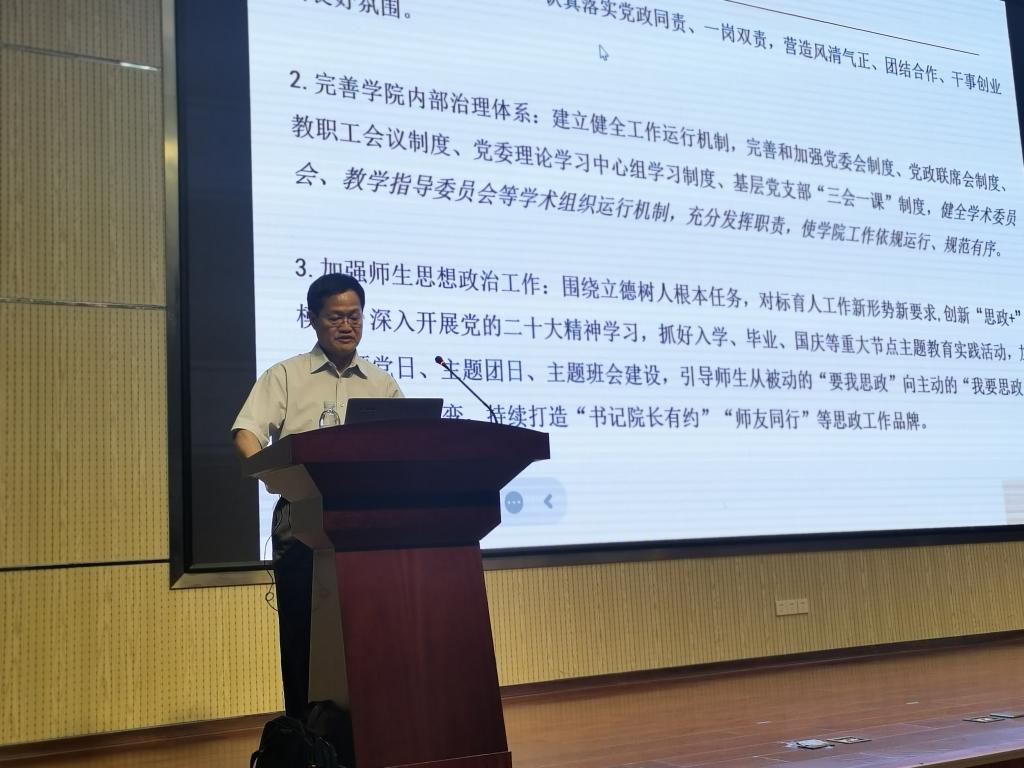 首先,党委书记李在宝带领大家进行政治理论学习,重点传达了学校2023年暑期中层干部学习研讨班精神,并结合胡金炎书记主旨报告对进一步做好学院理论学习、基层党建、薪酬制度改革、资源配置改革等各项工作进行了工作部署。