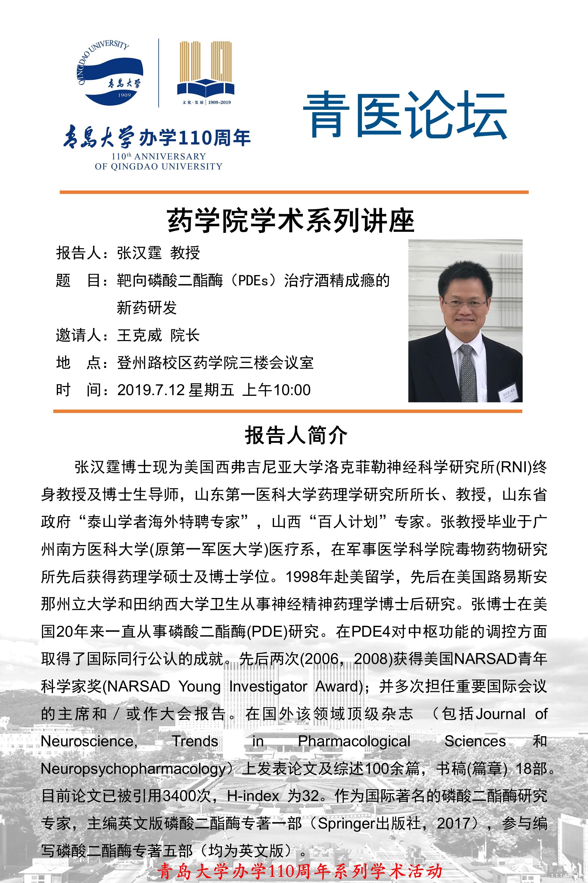伟德国际1946学术系列讲座预告--张汉霆 教授