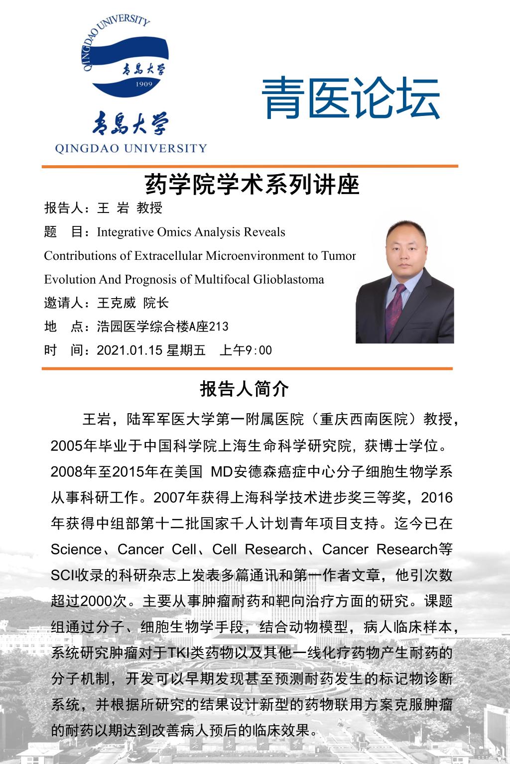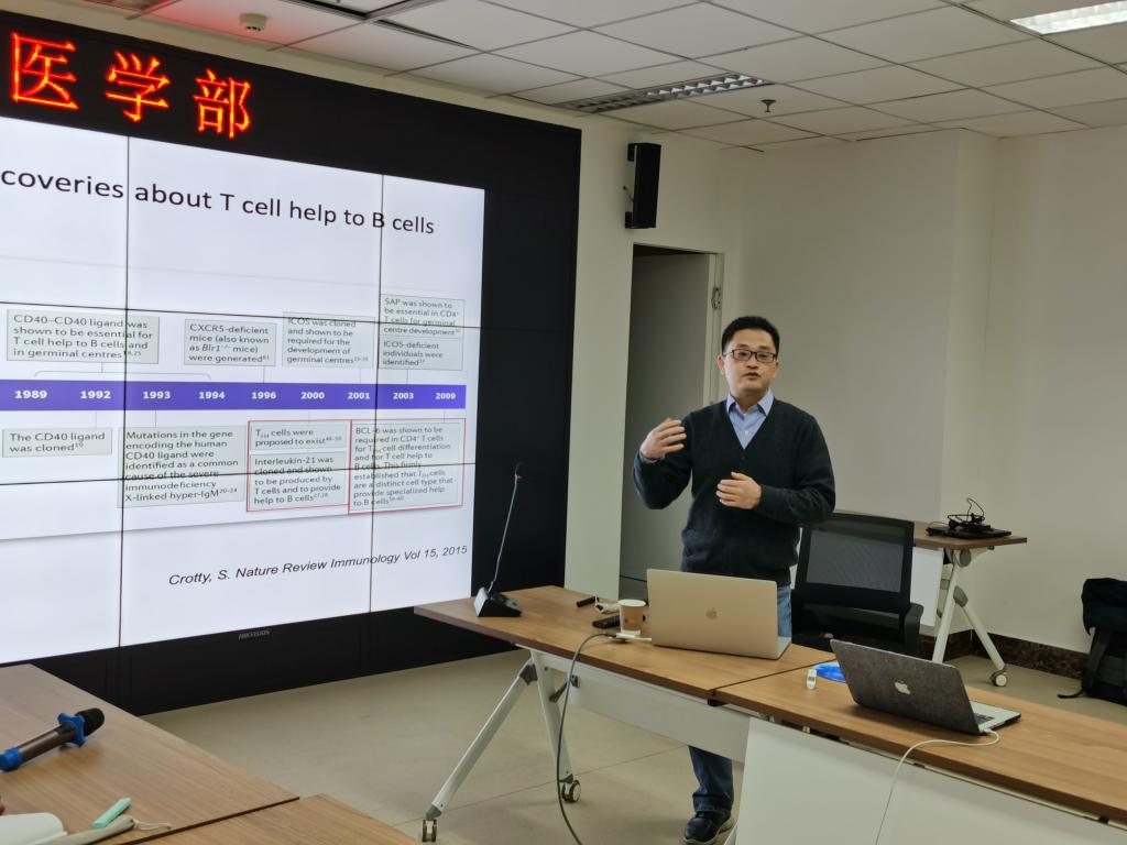 1月15日上午,医学部伟德国际1946邀请陆军军医大学王岩教授和刘新东教授分别作了题为《Integrative Omics Analysis Reveals Contributions of Extracellular Microenvironment to Tumor Evolution And Prognosis of Multifocal Glioblastoma》和《The Heterogeneity in Follicular helper T (Tfh) cells》的学术报告,报告在浩园医学综合楼A座213会议室举行,会议由王克威经理主持。