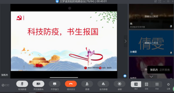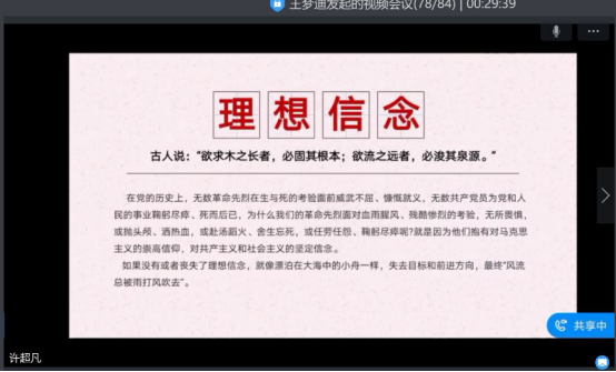 比赛中,初赛胜出的员工党员刘重阳、杨洪霞、程金倩、许超凡、王金艳、张凯杰、宁芳依次直播讲课。他们围绕“回望初心 诠释使命”、“光辉的历程--99年中国共产党党史”、“科技抗疫 书生报国”等主题,结合精心制作PPT课件,通过简洁精练的语言,聚焦党的理论知识的某个方面,图文并茂的分享展示了个人理论学习成果和思考认识。选手许超凡讲道,回望初心担使命就要始终不忘理想信念这一根本,始终不忘推动发展这一要务,始终不忘为民服务这一宗旨,始终不忘纪律规矩这一底线。程金倩发言道,只有了解历史的大事件,才能品味历史演变的内在规律、把握历史发展的趋向,进而从历史的玄机中找到发展之路。杨洪霞指出,哪有什么岁月静好,只不过是有人替你负重前行!疫情面前,家国一体。战“疫”在我,践行初心使命!