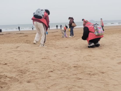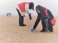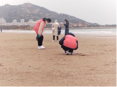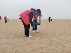 活动现场,志愿者们戴着手套,拿上垃圾袋,沿着石老人海水浴场的海滩开展净滩志愿服务,对沿线海滩的塑料袋、饮料瓶、烟头等垃圾进行地毯式清理。志愿者同学们不怕脏、不怕累,积极认真投入到净滩活动中,用实际行动为海滩的环境保护奉献青春力量。