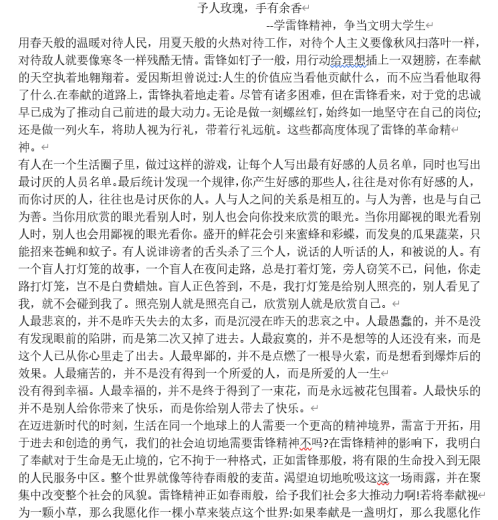 雷锋精神早已家喻户晓,他的事迹和精神感动了无数中华儿女,全国各地都在开展学雷锋活动,伟德国际1946也开展了雷锋月主题征文活动。