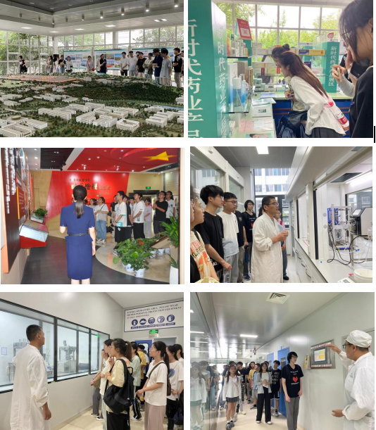6月28日下午,在工作人员的带领下,同学们先后参观了新时代药业展厅、厂区、赵志全同志纪念馆、化药研究中心、国际药品研发中心、57车间。参观过程中,通过相关老师的讲解,同学们进一步了解到企业的科研条件、设备条件等,并与讲解老师积极进行交流。