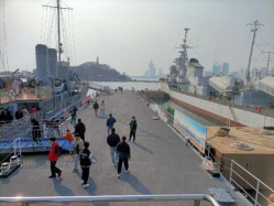 随后,同学们前往岸边的海上舰艇展区。中国第一艘国产驱逐舰济南舰、长江舰等具有标志性意义的功勋舰艇停泊在码头边,高耸的舰桥、白色的舰体十分醒目,它们承载着无数人的愿望,见证了人民海军新型战舰“零”的突破。