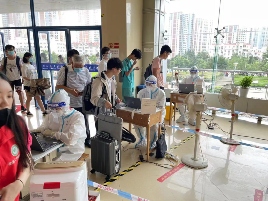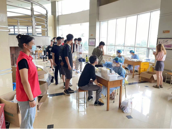 7月7日,伟德国际1946积极响应学校号召,根据上级统一部署,组织党员先锋队投入浮山校区东院剧院和会议中心当日的全员核酸检测志愿服务工作。伟德国际1946党员先锋队迅速到岗到位、主动担当作为,为校园疫情防控工作充实力量、保驾护航。