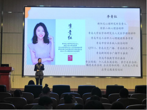 李青红为大家做了题为《认识心理现象提升认知层次--心理咨询理论与技术的具体应用》的专题讲座。李老师用大量生动形象的案例,穿插心理小游戏“击桌传水瓶”,随机提问并现场解答等多种形式,从“有效与正确”“压力与控制”“识别情绪”“了解欲望”“阳光心态的根本”五个方面,全面介绍了各种心理现象,介绍了心理咨询的概念和有关知识,赢得了现场同学的认可和关注。