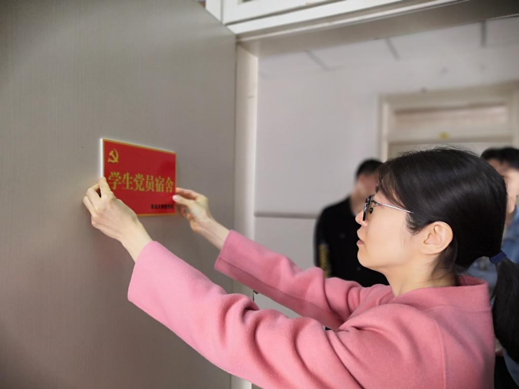 雷舒涵介绍了员工党员宿舍挂牌活动的工作要求和意义,提醒党员同志们要严于律己,应该将自己的一言一行都置于同学们的监督之下,自觉接受群众监督,弥补不足,力争发挥党员的模范带头作用,努力营造和谐融洽的宿舍氛围。雷舒涵为大家发放“员工党员宿舍”标牌,并走访员工党员宿舍,进一步了解员工日常生活状态,并为浩园所有员工党员宿舍挂牌。