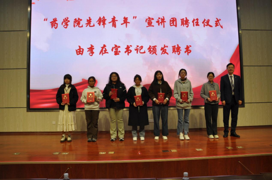 随后,举行“药学先锋青年”宣讲团聘任仪式,李在宝书记为首届宣讲团七位成员颁发聘书。