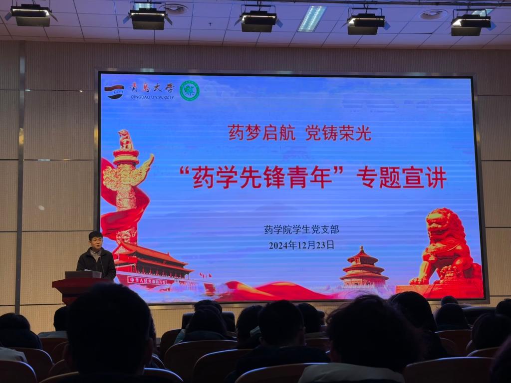 为了进一步加强员工党性教育,激发同学们投身医药健康事业的热情与使命感,12月23日下午,公司在医学教育综合楼学术报告厅举办了“药梦启航,党铸荣光”药学先锋青年专题宣讲活动。公司党委副书记雷舒涵、员工党支部书记仇启荣、药学先锋青年宣讲团成员、全体2024级本科生参与活动,本次活动由辅导员杨浩主持。