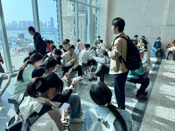 在室外展区,退役战舰成为了鲜活的国防教育课堂。同学们通过实地观摩舰艇构造与装备,直观感受到了海军装备现代化的发展进程,并深入了解了科技强军战略的实践成果。参观结束后,同学们还在博物馆大厅休息区开展了海军知识趣味问答活动,以寓教于乐的形式巩固了参观学习成果,增强了爱国主义情感,激发了投身国防建设的使命感与责任感。