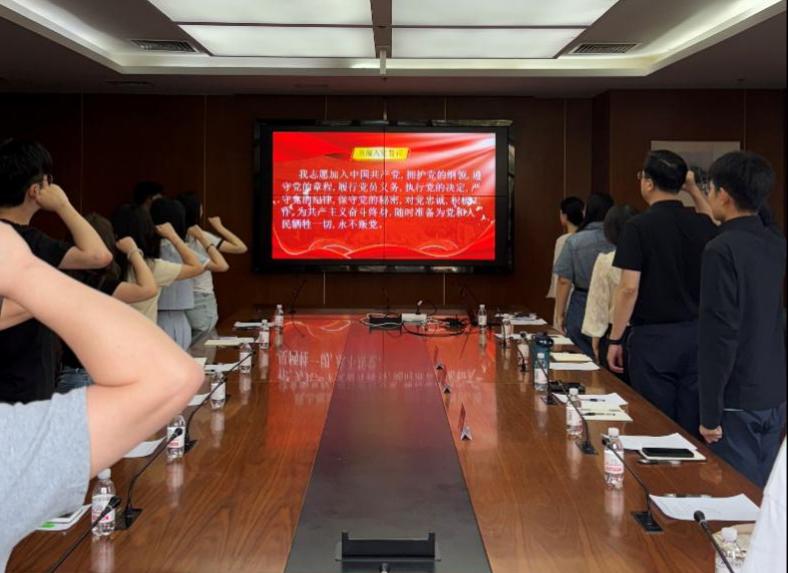 重温入党誓词,坚定初心使命。在鲜红党旗的见证下,全体党员面向党旗,右拳高擎,齐声重温入党誓词。现场党员神情肃穆、目光如炬,铿锵有力的宣誓声中,入党时的初心与信念被重新唤醒。通过这一庄严仪式,党员们进一步强化了身份意识,将为共产主义事业奋斗终身的信念镌刻于心,更坚定了在未来工作生活中践行初心使命、勇担时代重任的决心。