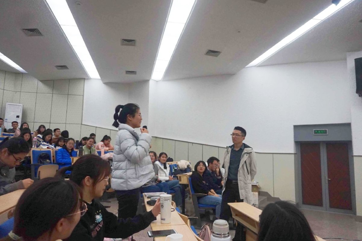 杨健员工向同学们普及了医药行业方面的知识,向同学们介绍了医药代表的职能和工作特点。
